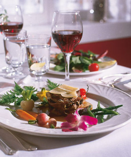 - Terminez le montage avec copeaux de reggiano. Nappez du jus de cuissons préparé plus tôt.